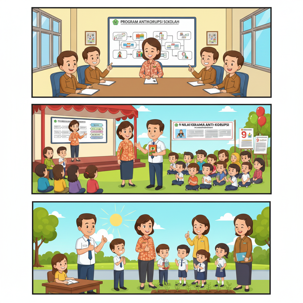 Keuntungan dari kemitraan ini adalah akses ke expertis dan resources yang mungkin tidak dimiliki sekolah, validasi dan kredibilitas program karena didukung lembaga negara, serta peluang networking dengan sekolah lain yang menerapkan program serupa untuk sharing best practices. Tantangannya adalah memastikan keberlanjutan program tidak hanya bergantung pada dukungan eksternal tetapi sudah menjadi budaya internal sekolah. Dengan kemitraan yang efektif, pendidikan antikorupsi di SD dapat mencapai standar kualitas tinggi dan memberikan dampak signifikan bagi pembentukan generasi antikorupsi.