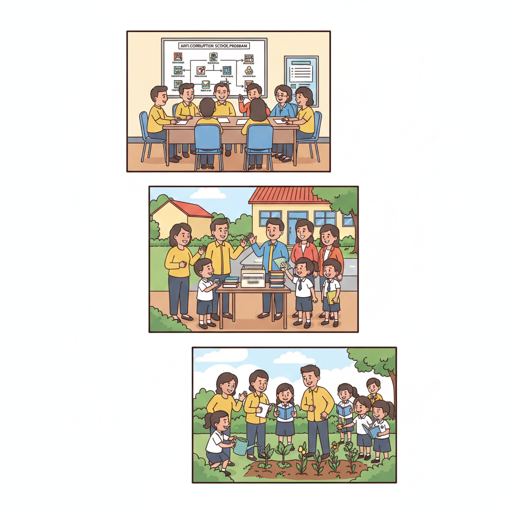Komite sekolah merupakan lembaga mandiri yang mewadahi partisipasi masyarakat dalam rangka meningkatkan mutu, pemerataan, dan efisiensi pengelolaan pendidikan. Dalam konteks pendidikan antikorupsi, komite sekolah memiliki peran strategis sebagai jembatan antara sekolah dengan orang tua dan masyarakat, serta sebagai pengawas yang memastikan transparansi dan akuntabilitas pengelolaan sekolah. Kontribusi aktif komite sekolah sangat penting untuk keberhasilan dan keberlanjutan program pendidikan antikorupsi di SD.
