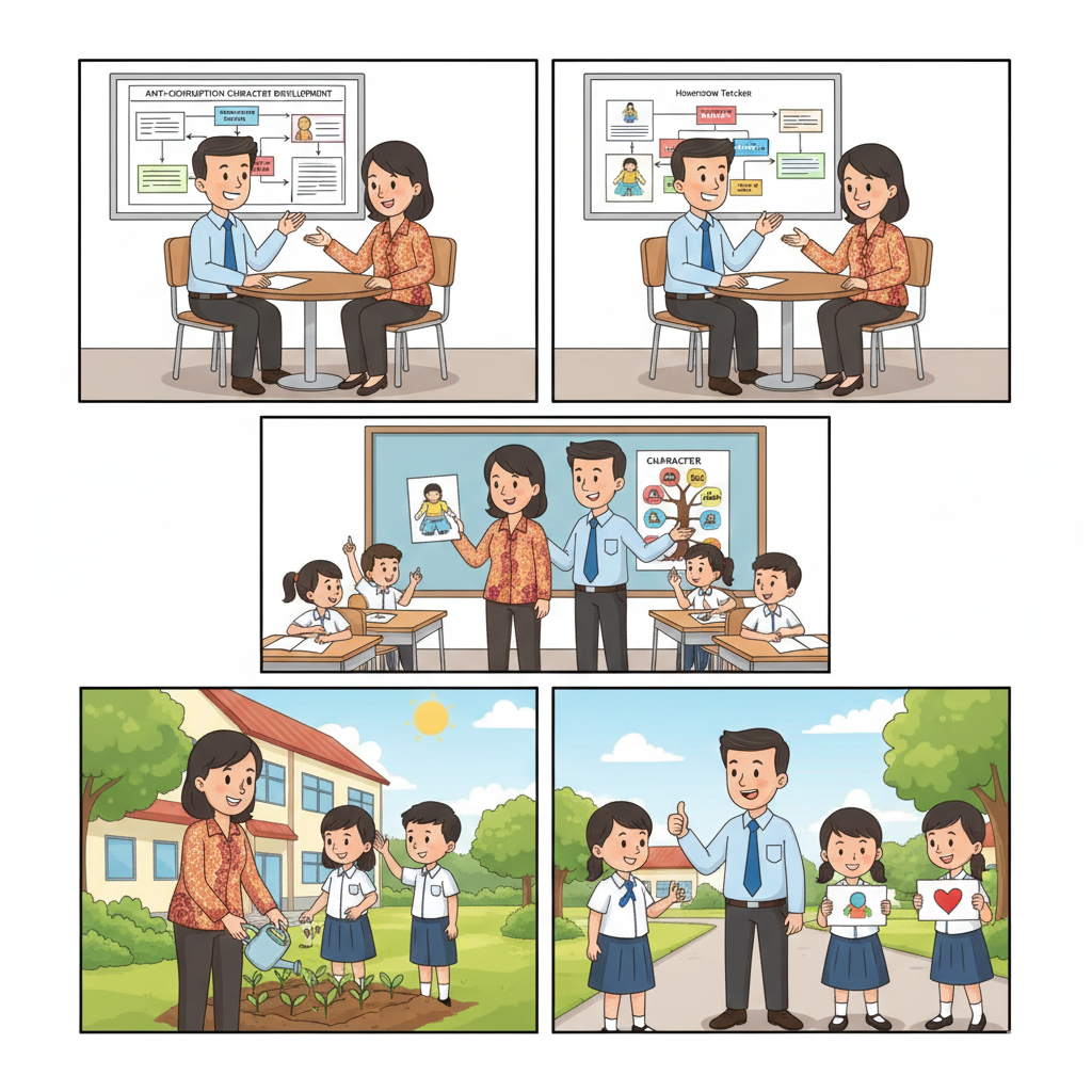 Guru Bimbingan dan Konseling (BK) serta wali kelas memiliki peran strategis dalam pendidikan karakter karena mereka memiliki interaksi intensif dengan siswa dan pemahaman mendalam tentang perkembangan individual setiap anak. Sinergi antara guru BK dan wali kelas dalam pendidikan antikorupsi sangat penting untuk memberikan pendampingan yang komprehensif dan personal bagi siswa. Kolaborasi keduanya memastikan pendidikan antikorupsi tidak hanya menyentuh aspek kognitif tetapi juga afektif dan behavioral dengan pendekatan yang sesuai kebutuhan individual siswa.